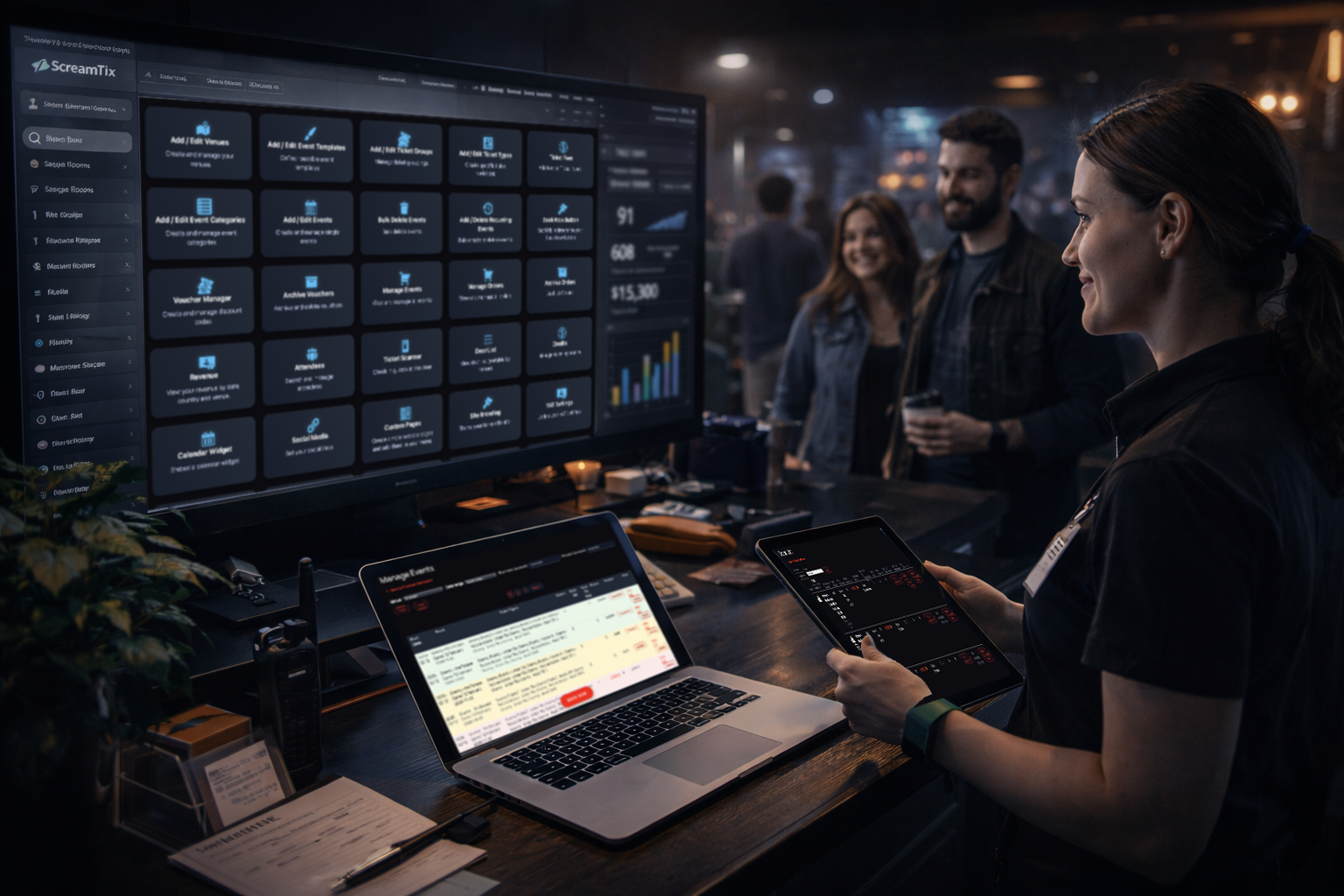 From ticket sales to guest arrivals, communications and reporting — ScreamTix gives producers full operational control.